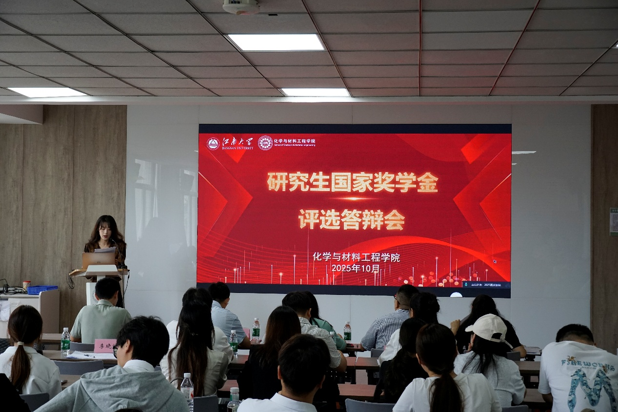 为落实立德树人根本任务、突出科研育人导向,树立研究生先进典型、凝聚榜样力量以评促学,筑牢优良学风、发挥国家奖学金激励作用,江南大学化工学院于10月15日下午在化工楼A316报告厅举行2025年度研究生国家奖学金评审答辩会。