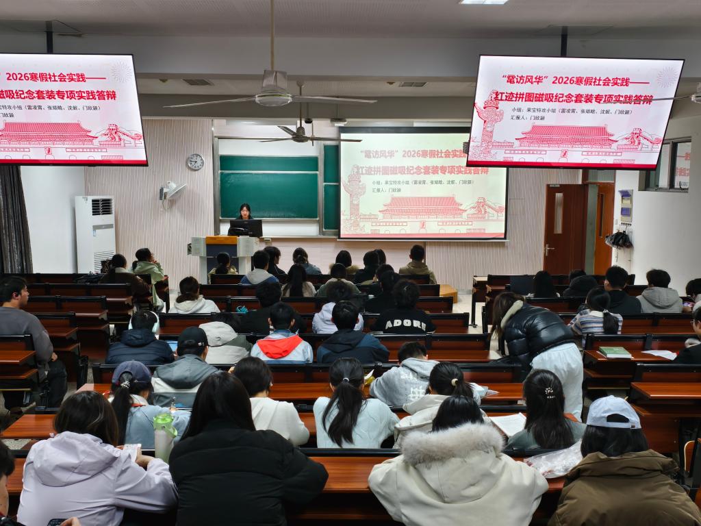 寒假期间,学院多支实践团队奔赴各地开展红色寻访与实践调研,成果丰硕、亮点纷呈。现场展示环节,各团队依次登台分享实践历程与感悟:“星火四人组队”以实地走访与对话交流,重温实践足迹、传递信仰力量;“烟雨江南实践团” 走进固始陵园、天门纪念馆等革命旧址,在历史现场感悟初心使命;“彭雪枫纪念馆打卡实践团”深情讲述革命将军事迹,诠释共产党人忠诚担当;“赤心同行小队”深入方志敏烈士故乡江西弋阳,探寻红色基因在乡土大地的传承密码;“果宝特攻小组”创新设计“红迹拼图”磁吸纪念套装,以青春文创活化红色文化;“铭记历史、缅怀先烈-勿忘国耻队”参观侵华日军第七三一部队罪证陈列馆,在铭记历史中坚定自强信念;“電游溪迹实践团” 走进武汉革命博物馆,融合红色打卡与IP设计,以创意形式传承革命薪火;“海利化研小队”对话湖南海利集团营销干部,聚焦行业前沿拓展专业视野;“薪火戎光小组” 聆听参核老兵故事,以《传承老兵精神、赓续军旅荣光》为题,赓续永不褪色的军旅精神。现场评委为获奖团队颁发荣誉证书并合影留念。