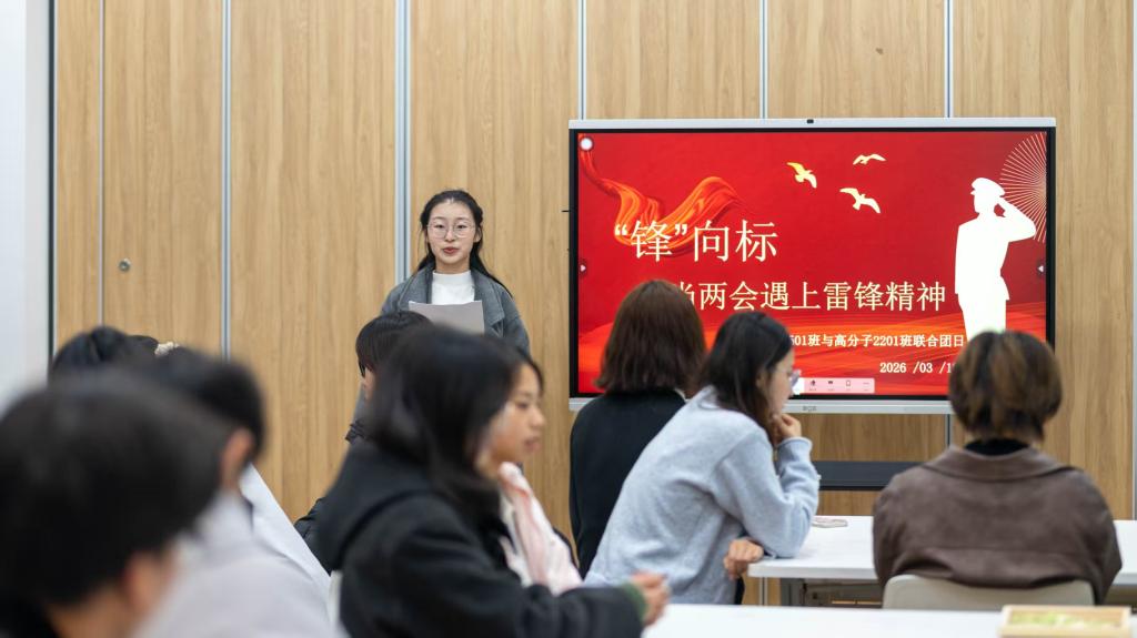为深入学习贯彻全国两会精神,大力弘扬新时代雷锋精神,搭建团支部交流共建桥梁,近日,化学与材料工程学院高分子2201雷锋特称团支部结对化工2501班开展“‘锋’向标——当两会遇上雷锋精神”主题团日活动。活动以精神传承、朋辈引领、实践践行为核心,让高年级学长学姐与低年级新生面对面交流、心贴心互动,在轻松热烈的氛围中共同学习两会精神、感悟雷锋精神内涵,让奉献精神与责任担当在青春接力中传递延续。