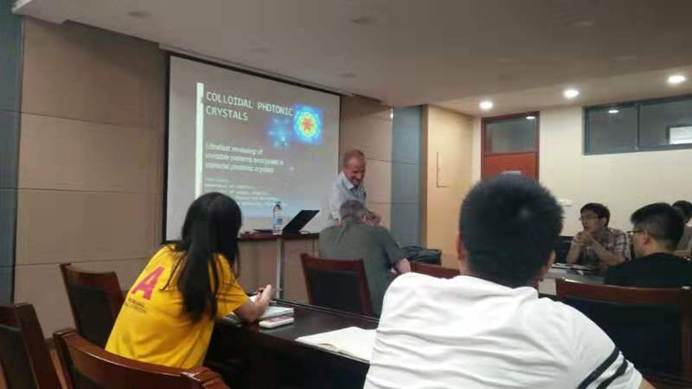 2019年9月10日下午15:30,比利时天主教鲁汶大学化学系Koen Clays教授与澳大利亚国立大学Mark G. Humphrey教授访问化工学院,并在化工学院A310开展了主题为“Colloidal photonic crystals”的讲座,化工学院张金方老师主持了这个讲座。讲座上Koen Clays教授与Mark G. Humphrey教授交流了胶体光子晶体的理论,胶状晶体材料随着空气湿度而变色以及通过缺陷设计改变胶体光子晶体的通频带的科学问题,讲座中Koen Clays教授将自己实验室自制的胶体片分发给化工学院的老师和同学,并且示范了变色的现象,Koen Clays教授与Mark G. Humphrey教授认真解答了化工学院老师和同学提出的问题。