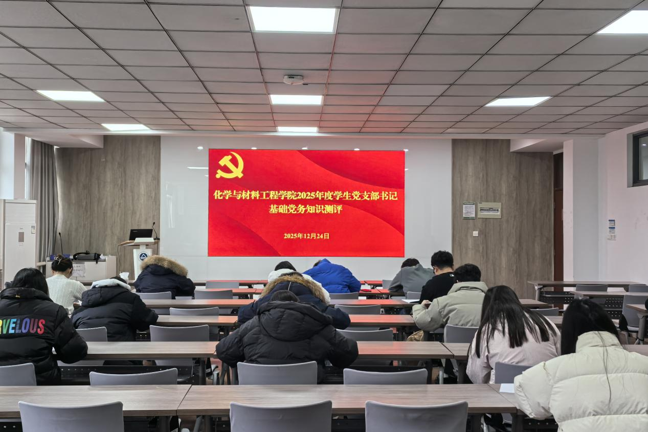 为深入学习贯彻习近平新时代中国特色社会主义思想,进一步压实基层党建工作责任,提升学生党支部书记履职能力,推动全面从严治党向基层延伸。近日,化学与材料工程学院党委创新考核形式,采取“理论测试+述职答辩”相结合的方式,分阶段组织开展2025年度学生党支部书记述职评议考核工作,全面检验党建工作成效,着力提升学生党支部书记履职能力与基层党建工作规范化水平。