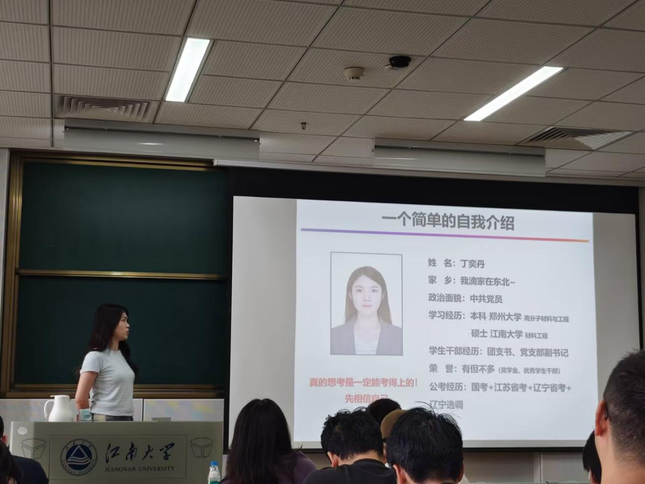 为助力学生明确考公考编方向,掌握上岸技巧,5月27日,江南大学化学与材料工程学院“化山论见之职引未来系列活动”第二期——“上岸攻略”考公考编专场讲座在东氿校区知行楼 C102 顺利举行。